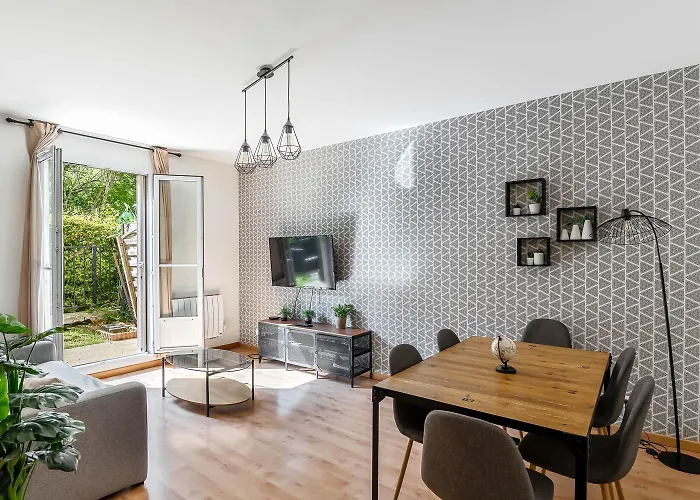 2 Bedroom Apartment Galmy Val D'Europe jest wyposażony w wyposażony aneks kuchenny, gdzie goście mogą przyrządzać własne posiłki. W odległości 5-minutowego spaceru od tego apartamentu mieści się Solo Pizza Napoletana, w którym można spróbować dań kuchni włoskiej. Około 600 m do stacji kolejowej Val d'Europe. Dzięki luksusowym udogodnieniom, w tym tarasowi i ogrodowi, goście mogą odpocząć i zrelaksować się. Obiekt posiada taras z widokiem na ogród.